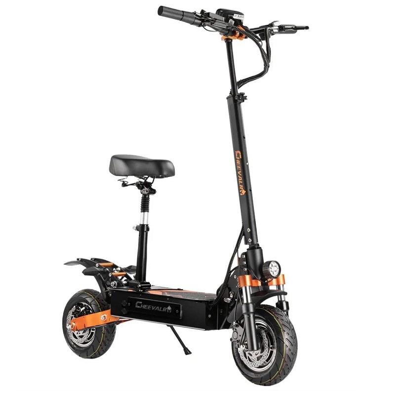 La Cheevalry S10 allie puissance (2x1600W), autonomie (110 km) et sécurité (freins hydrauliques) dans une trottinette tout-terrain livrée avec siège.